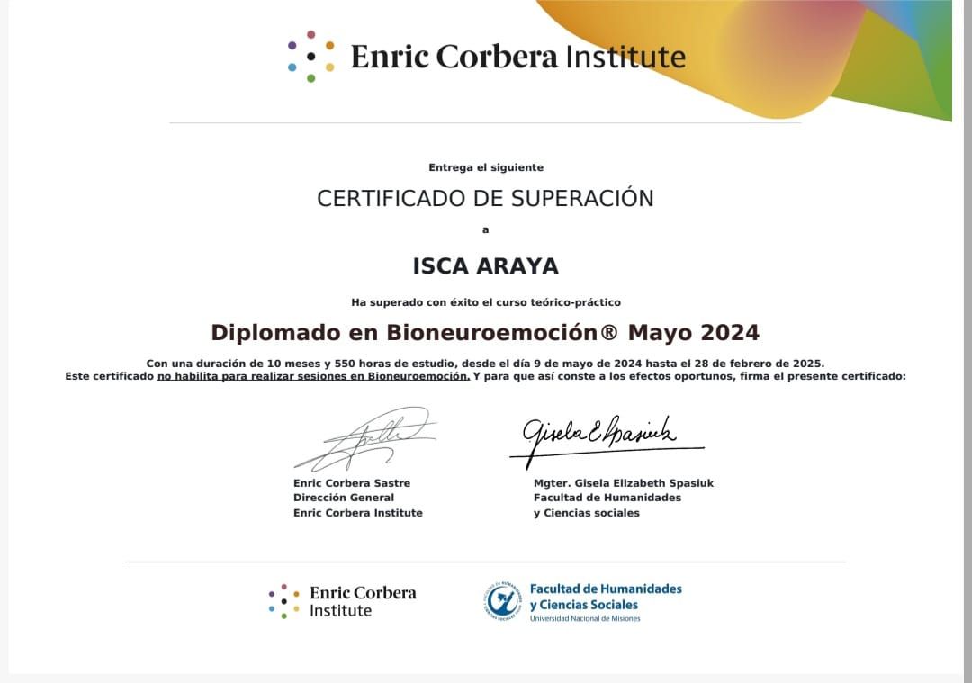 Psicóloga clínica online especializada en Neurociencia del Cuerpo (certificada), Coaching y Bioneuroemoción. Acompaño a adultos y adolescentes que quieren entender qué sienten, por qué se repite lo que se repite y cómo actualizar su sistema de creencias para cambiar hábitos y relaciones desde la raíz.